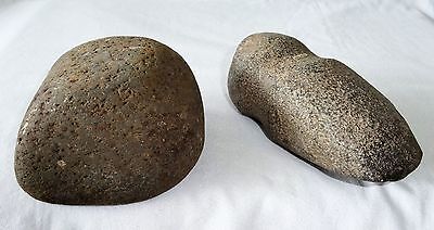 2x Hohokam New Mexico Stone Carved Full Grove Stone Axe and Rubbing Stone (Ver)