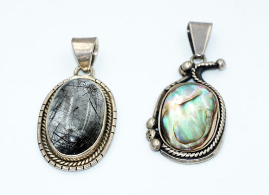 2x Vintage Sterling Silver Pendants w Hair Crystal & Abalone Shell Accents (Tra)
