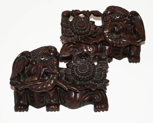 2x-19/20C Chinese Pierced Wood Carved Elephant & Flower Motif Ornaments (Cwo) IC
