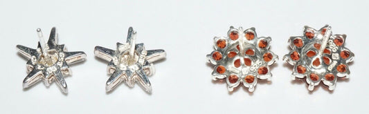 2xPair Sterling Silver Stud Earrings Star w. Cz's & Carnelian & Garnets(SaR)#344