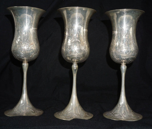 3 Pc Vtg Italian Mazzucato Cesellato A Mano Sterling Silver Goblets 1 of 2 (MaC)