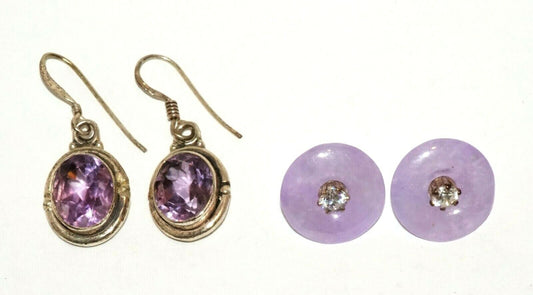 2xPairs Modern Silver Earrings w. Amethysts and Lavender Jade & CZ (HaL)#24