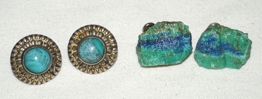 2xPair Sterling Silver Earrings set w. Turquoise & Rough Stone Accents (KoS) L12