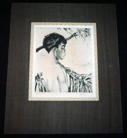 30s Hawaii Etching Print Young Boy "Kaipo Hawaii" by John Melville Kelly (FoM)
