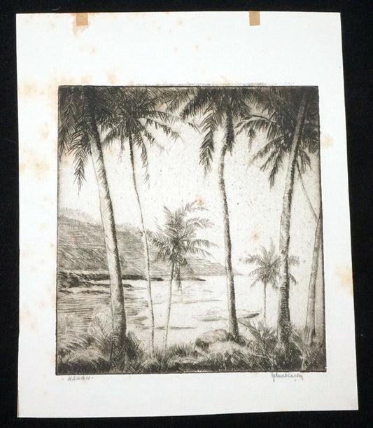 30s Hawaii Etching Print Coastal Landscape John Melville Kelly (1879-1962)(Kel)