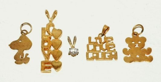 3+2x Vintage 14k Yellow Gold Charms Love Bear Snoopy+2x G.P Love CZ Pend(BrM)#49