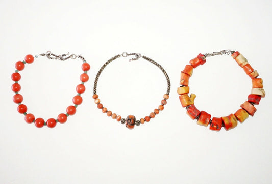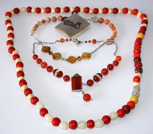 3x Vintage Chinese Red Coral & Glass Bead Choker Necklaces (***) F
