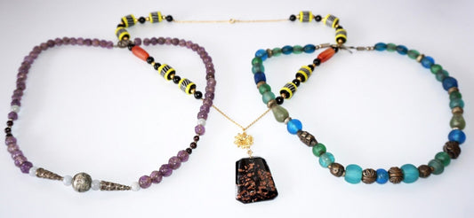 3x Mixed Bead Necklaces w. Amethyst & Glass & Silver by Yasue Yamada (Yam)#7
