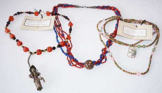 3x Chinese Mixed Bead Necklaces w. Jade & Coral & Silver by Yasue Yamada (Yam)#6