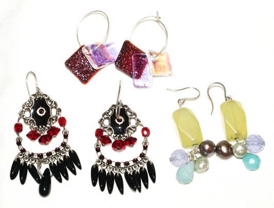 3x Pairs Fun Fashion Earrings w. Colorful Glass, Pearls & Gemstones (KoS) L12