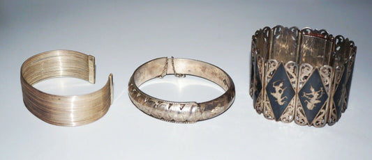 3x Sterling Silver Niello Ware Bracelet & Cuff & Hinged Bangle Mix Lot (NoN)BN8