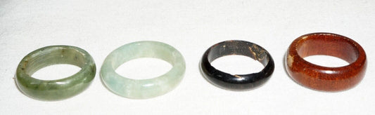 4Pc Vintage Chinese Ring Lot Sz. 6.75/5/5.25/5 Black Coral, Jade, Wood (BrM) L1