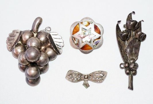 4Pc Vintage US Mexican Sterling Silver Pin Brooch Pendant Mixed Lot (***) 25
