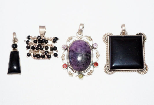 4Pc Vintage Serling Silver Pendants set w. Onyx, Turmaline & others (***)15