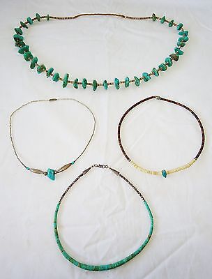 4x Indigenous American Necklaces w. Silver, Shell & Turquoise (Coc)