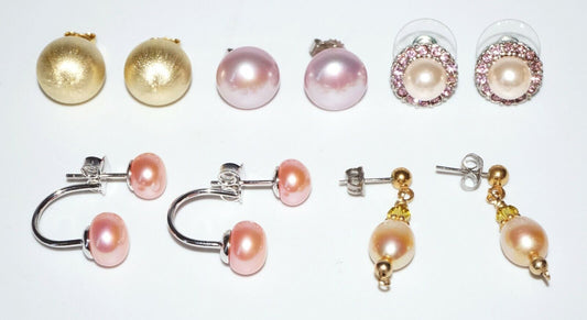 5 Pairs Vintage Sterling & Silver & Colored Multicolor Pearl Earrings (SaR)#419