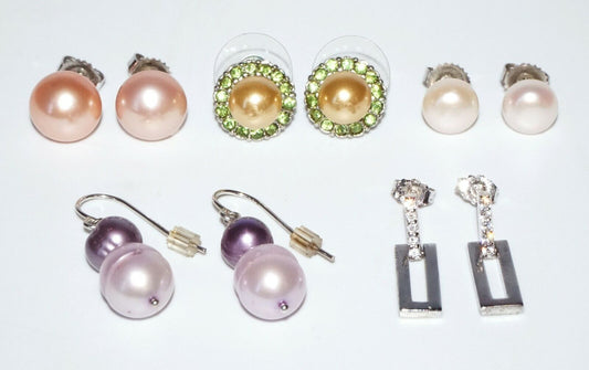 5 Pairs Vintage Sterling & Silver & Colored Multicolor Pearl Earrings (SaR)#420