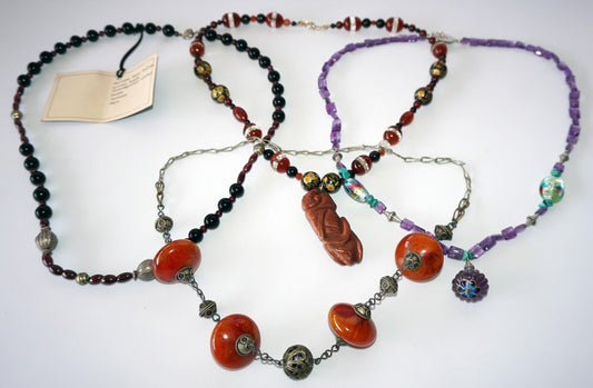 4x Mixed Bead Necklaces w Onyx, Crystal, Silver, Enamel by Yasue Yamada (Yam)#14