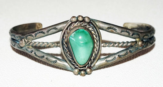 4Pc Vtg Sterling & Silver Cuff Bracelet, Cufflinks & Chinese Chard Pendant (Mam)