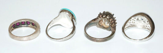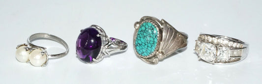 4x Vtg Silver Rings Sz 6.25/6.5/8/9.5 w. Amethyst C.z. Pearl Turquoise (SaR)#426