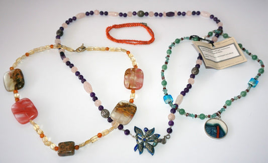 4x Chinese Mixed Bead Necklaces w Jade, Coral, Amethyst by Yasue Yamada (Yam)#11