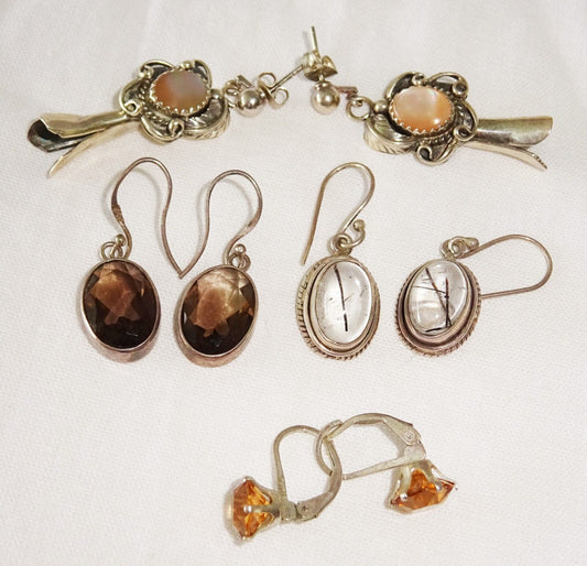 4x Pairs Vintage Silver Alloy Earrings set w Semi Precious Stone Accents(Tra)