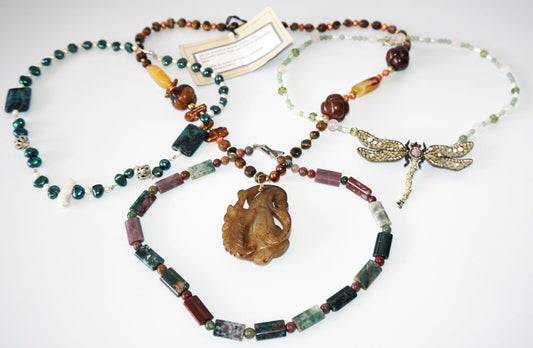 4x Chinese Mixed Bead Necklaces w Quartz, Serpentine + by Yasue Yamada (Yam)#10