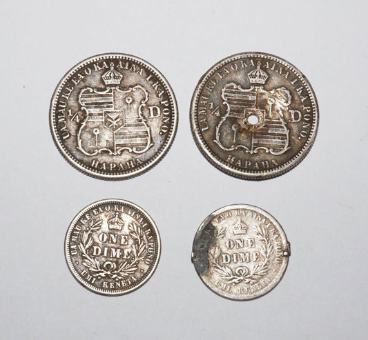 4x 1883 Hawaii Silver Quarter Dollar Hapaha & 10 Cents 1x Dime Kalakaua (Amy)