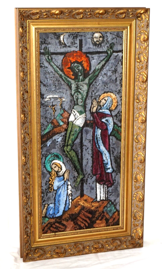 70s Hawaii Christian Catholic Oil Painting Le Croix Jesus by Erica Karawina (Mil
