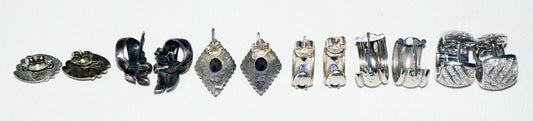 6x Pairs Sterling Silver Earrings Diamonds Amethyst Tanzanite Turquoise(SaR)#193