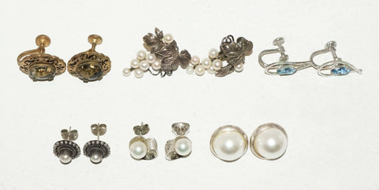 6x Pair Sterling Silver/Silver/Gold-plated Earrings w. Pearl Accents (BrM)#40