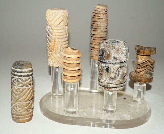6Pc Prehistoric Thai Iron Age Ban Chiang Ceramic Rollers on Stand (Mil) 209