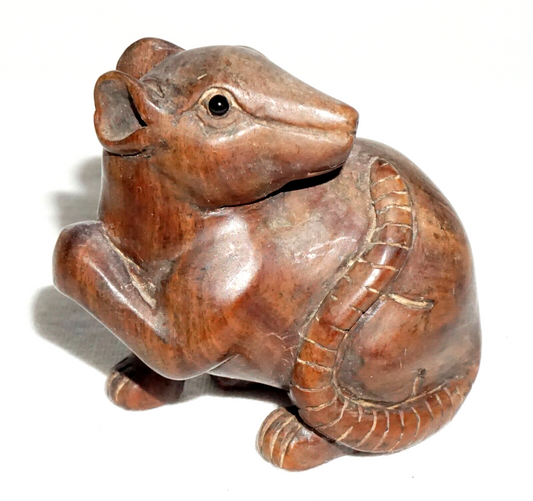 Vintage Japanese Carved Dark Wood Netsuke Rat Motif (FeH