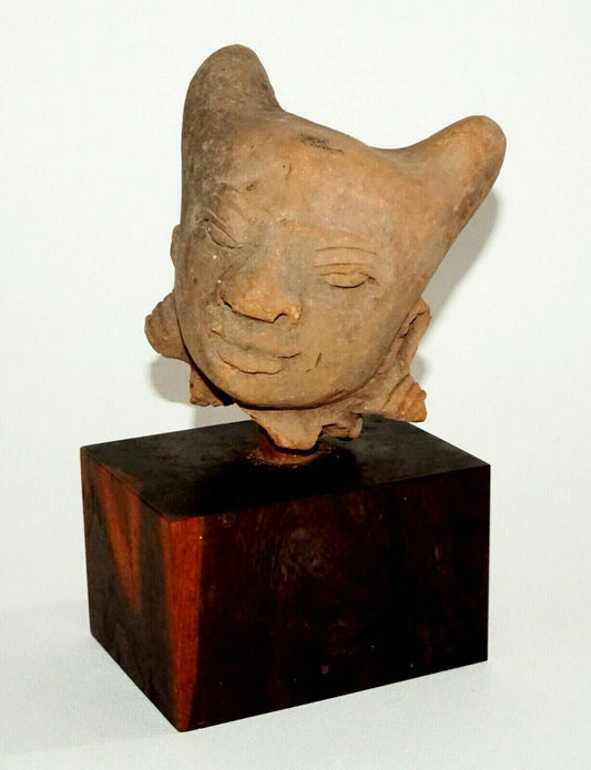 14C Indonesian Majapahit Pottery Clay Head on Wooden Stand (PoD) IC