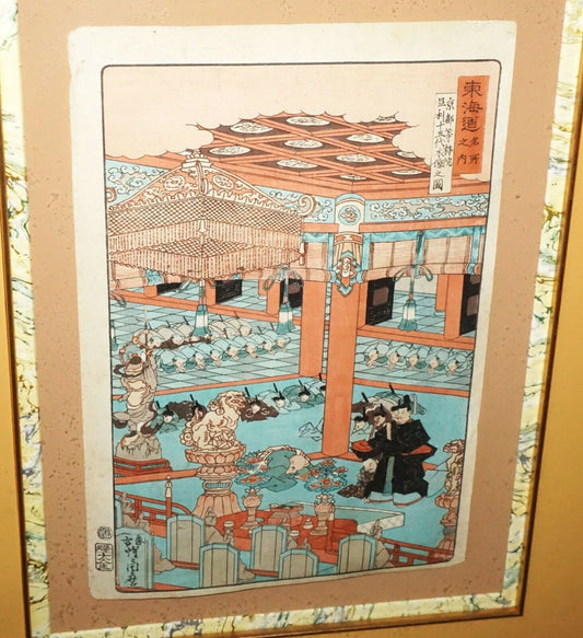 Vintage Japanese Framed Woodblock Print Palace Ceremony by unknown artist (***)
