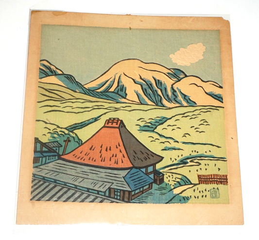 50s Japanese Woodblock Print Sprint Mountains Mabuchi Toru (1920 - 1994) (SeF)