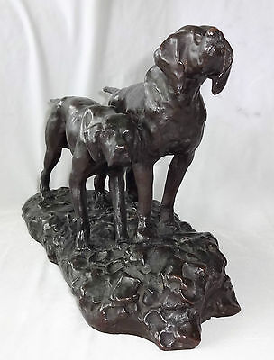 1930s JAPANESE BRONZE SCULPTURE "PAIR of HUNTING DOGS" sign HIDEAKI (Ree)
