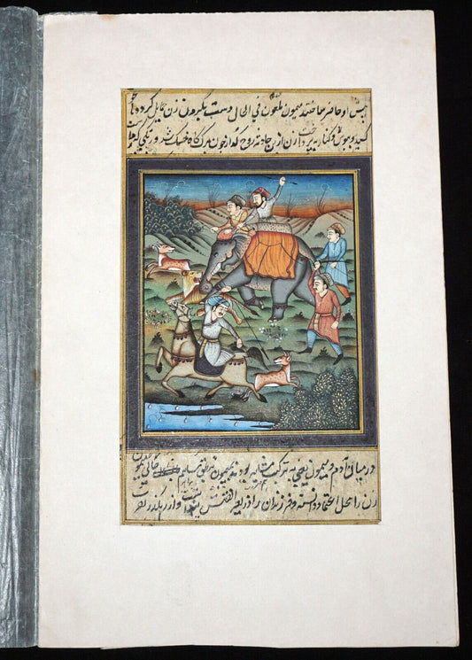 18/19C Indian Color Hunting Scene Mogul Paintings on Book Page (NiT) #3