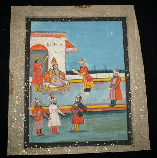 18/19C Indian Color Royal Court Scene Mogul Painting on Book Page (NiT) #7
