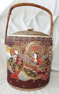 1930s Japanese Satsuma Ware Pottery Jar w. Raised Design Buddhist Deity (***)