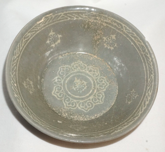 14C Korean Koryo Inlaid Pottery Bowl Celadon Glazed w. Floral Designs (JSt)1 IC