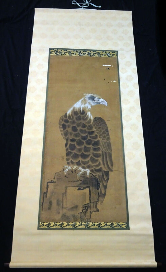 1850s Japanese Scroll Painting of a "Hawk Bird of Prey" from Samurai House (Fuj)