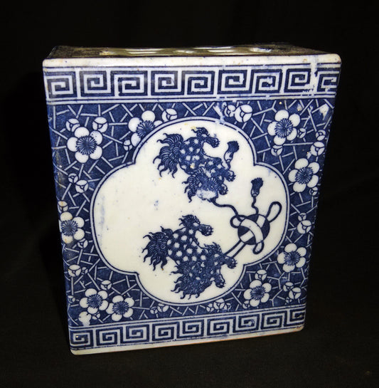 19/20C Japanese Porcelain Neck-Pillow w Stenciled Lion Dog & Floral Motifs (Drc)