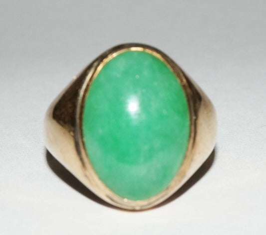 Vintage Chinese Yellow Gold Ring Sz.9 w. Attractive Green Jadeite Jade (TaL)