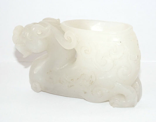 Vintage Chinese White Jade Mini Cup w. Nicely Carved Dragon Motif (AHB)