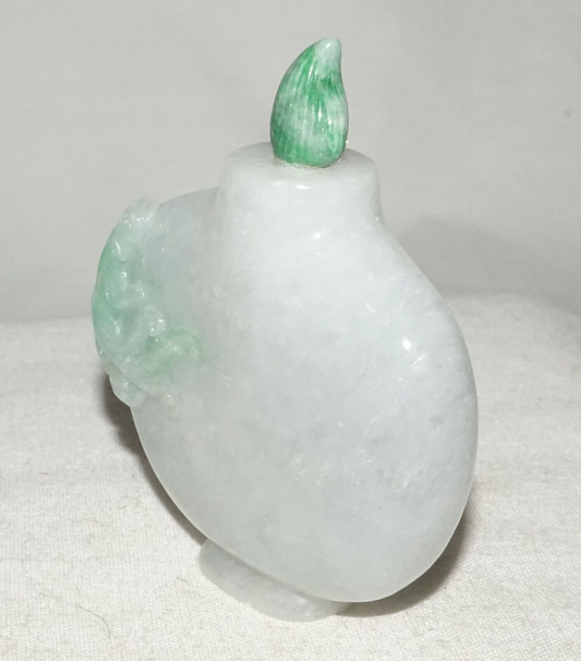 Vintage Chinese White & Green Jadeite Jade Snuff Bottle w. Dragon Motif (LeS)