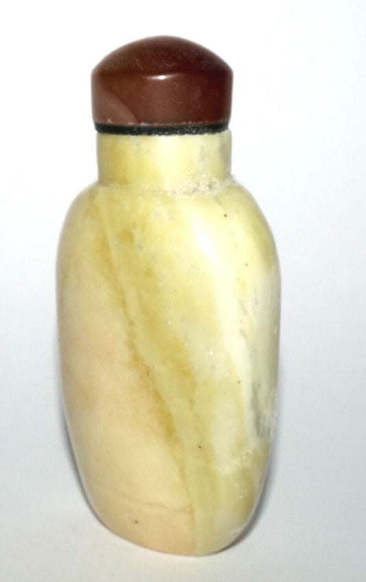 Vintage Chinese Yellow Hard Stone Carved Snuff Bottle w. Agate Stopper (LeS) G12