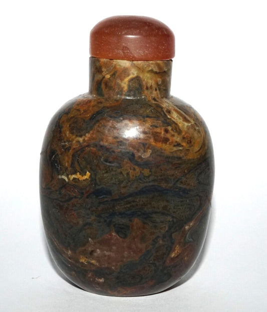 Vintage Chinese Unknown Hard Stone Snuff Bottle w. Garnet Stopper (LeS) G12
