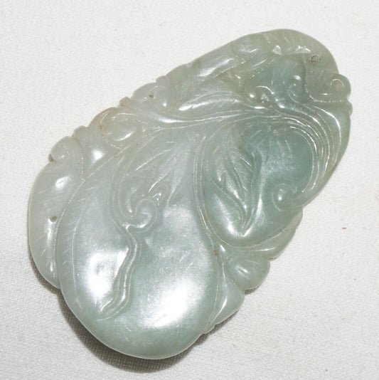Vintage Chinese Well Carved Jadeite Jade Pendant Peach Feline & Toad Motif (***)
