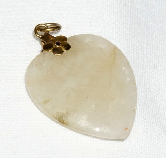 Vintage Chinese Semi Translucent Yellowish Jadeite Jade Heart Pendant (ChY)